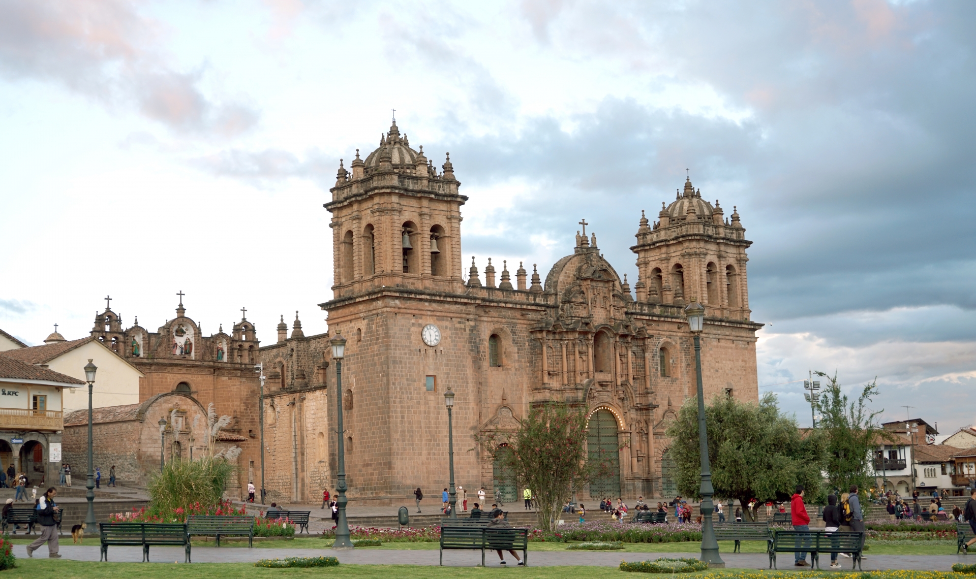 この広場は、かつてインカ帝国の政治・宗教の中心「ワカイパタ」と呼ばれた神聖な場所でした。その後、スペイン人によって再開発され、植民地支配の象徴としてカテドラルや教会が建てられました。